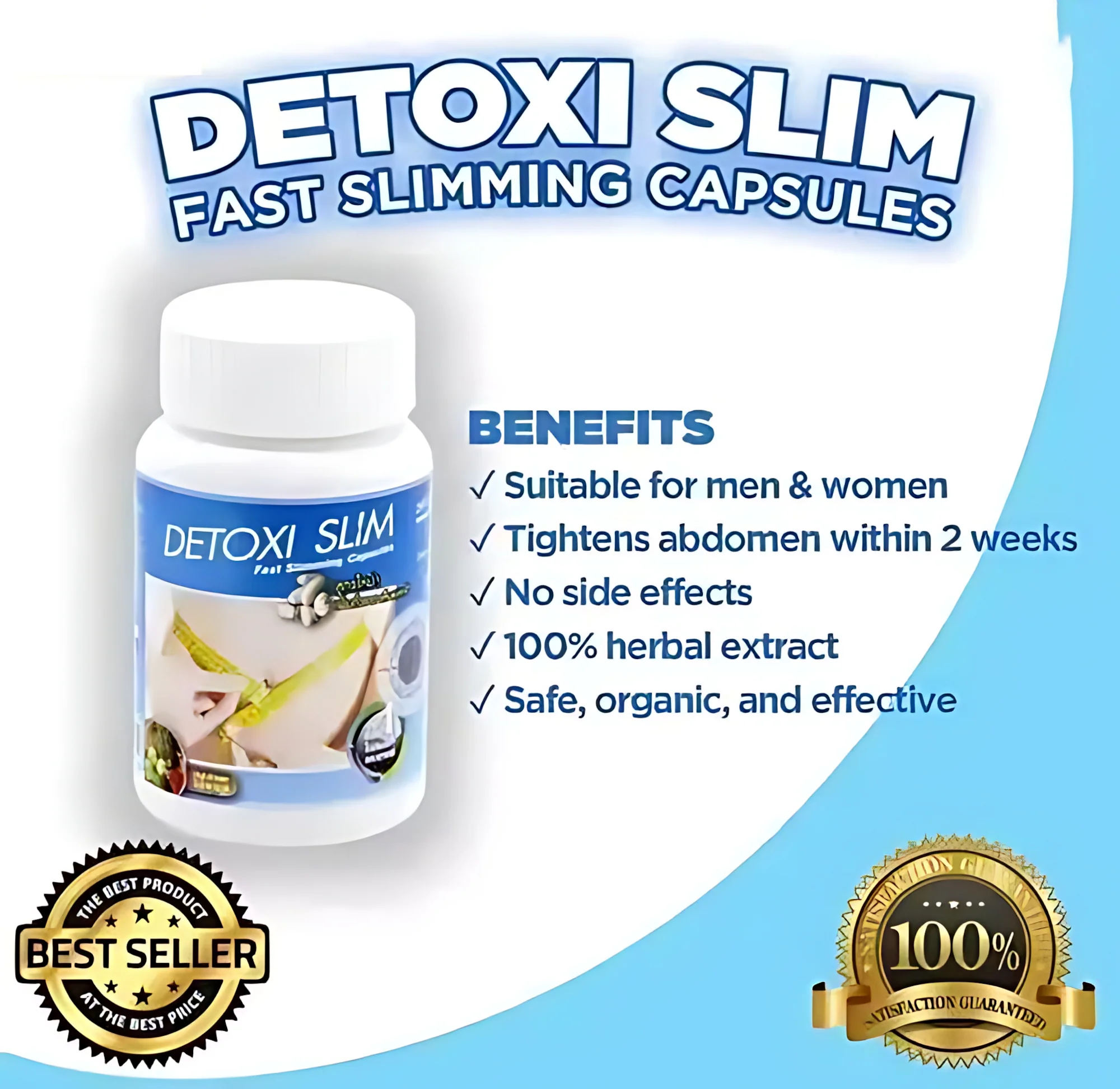 Detoxi Slim Fast Slimming Capsules is a herbal dietary supplement formulated to support appetite control, digestion, and overall body wellness. Made with a blend of natural plant extracts and fiber-rich ingredients, it is designed to assist individuals who want to manage their weight as part of a healthier lifestyle.