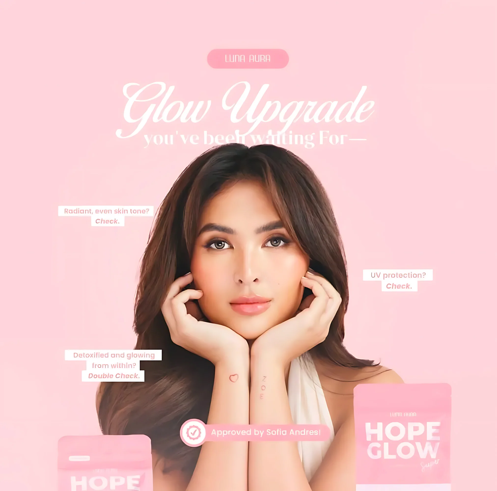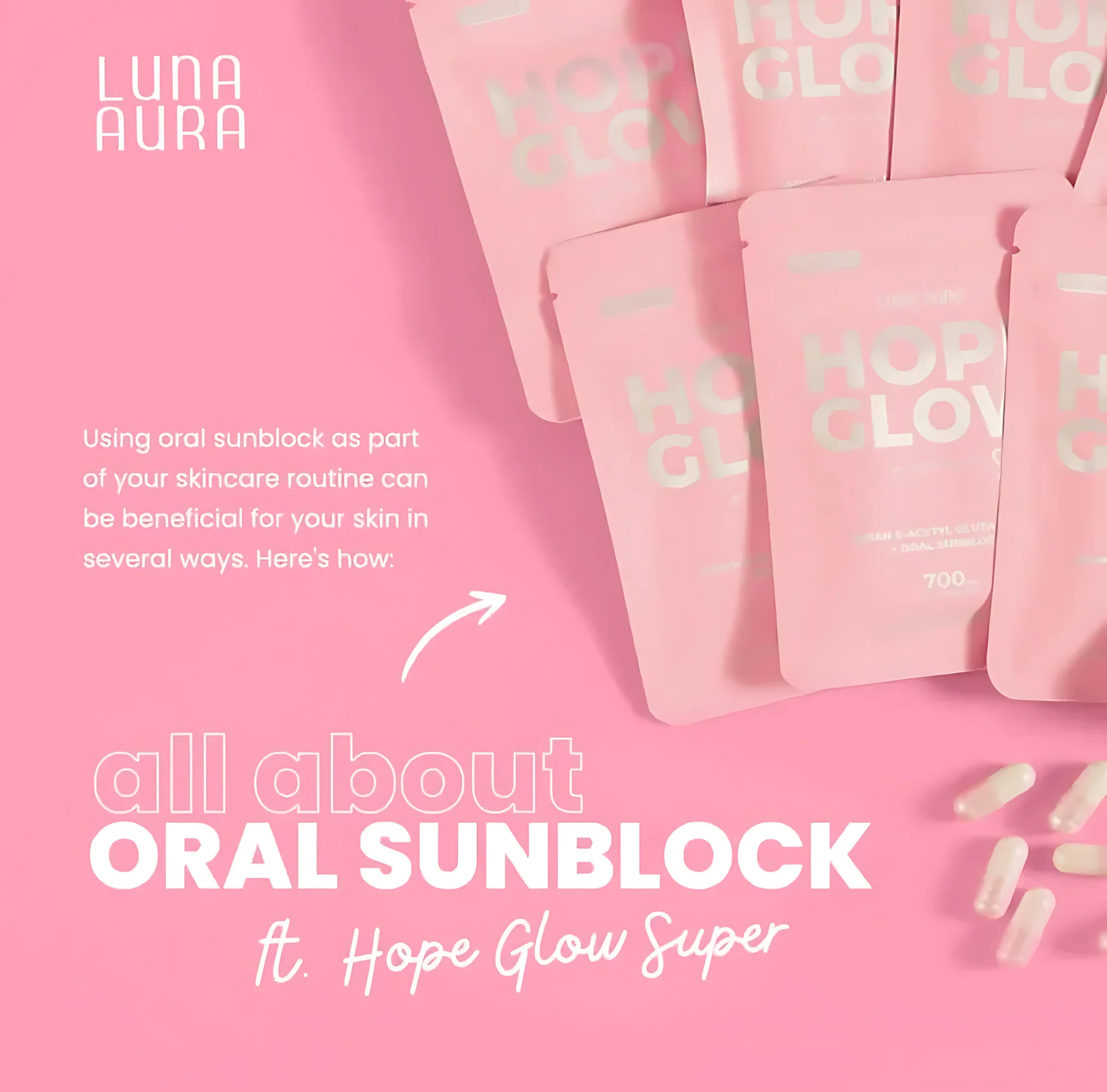 Luna Aura Hope Glow Advanced Glutathione Super Mini is a premium beauty and wellness supplement combining Japan S‑Acetyl Glutathione with an Oral Sunblock concept. Each capsule delivers 700 mg of advanced actives to help support skin clarity, antioxidant protection, and overall vitality.