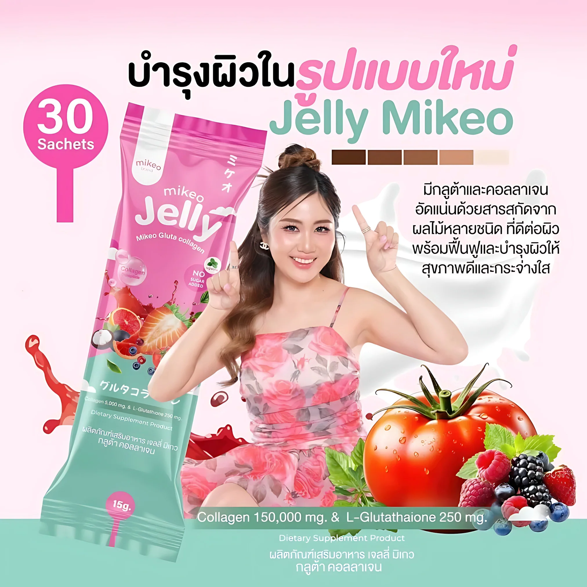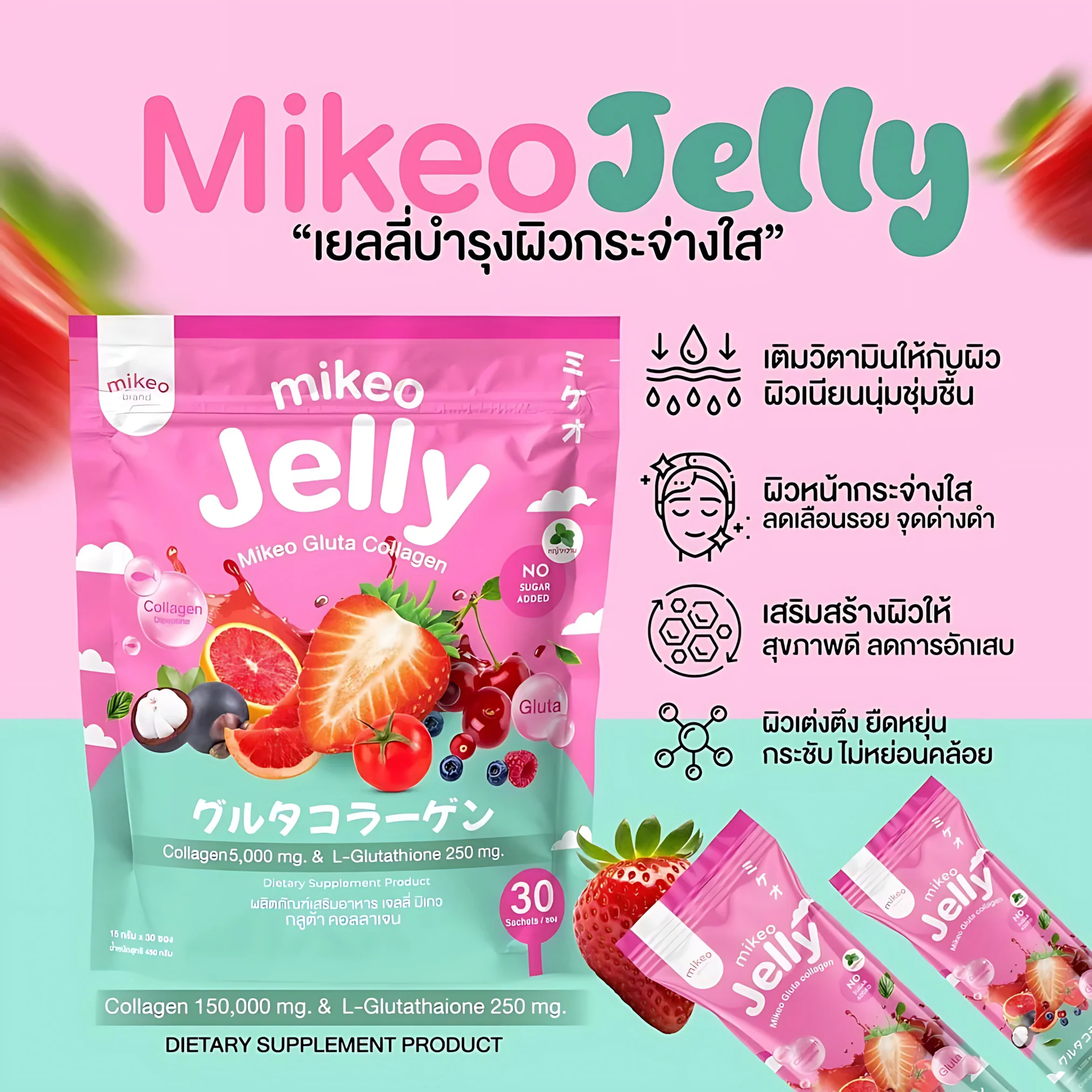 Mikeo Jelly Gluta Collagen – Strawberry Flavor (30 Sachets x 15g)