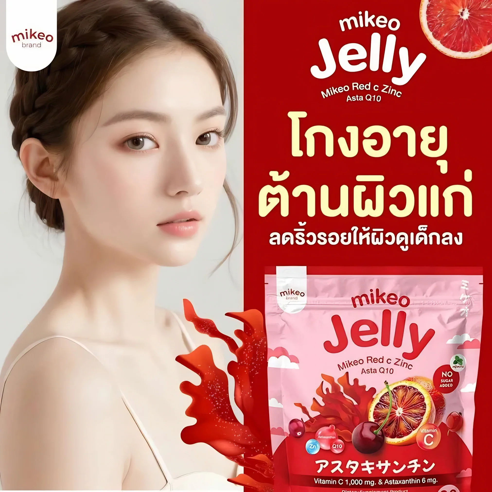 Mikeo Jelly Red C Zinc Asta Q10 is a delicious, antioxidant-rich jelly supplement designed to brighten skin, improve elasticity, and protect against premature aging.